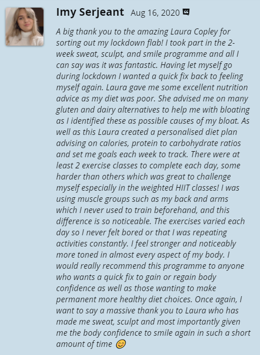 If you are local to the East Midlands, check out our outdoor fitness classes. If you are from further afield, join the online fitness classes with 7 live classes per week as well as hundreds on demand. You can also link fitness trackers to the website so we can make sure you do them, so there’s no excuses to miss a work out! ;)